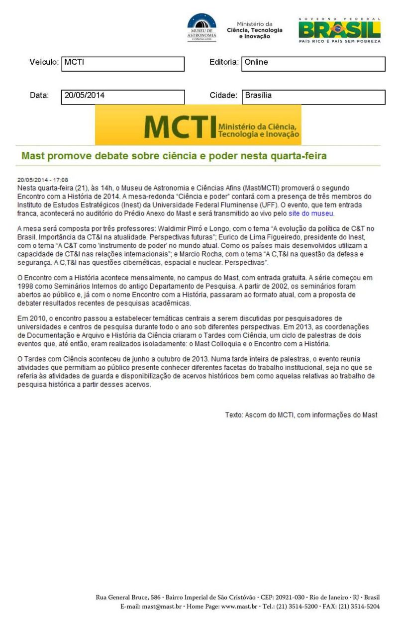 MCTI | MAST promove debate sobre ciência e poder nesta quarta-feira