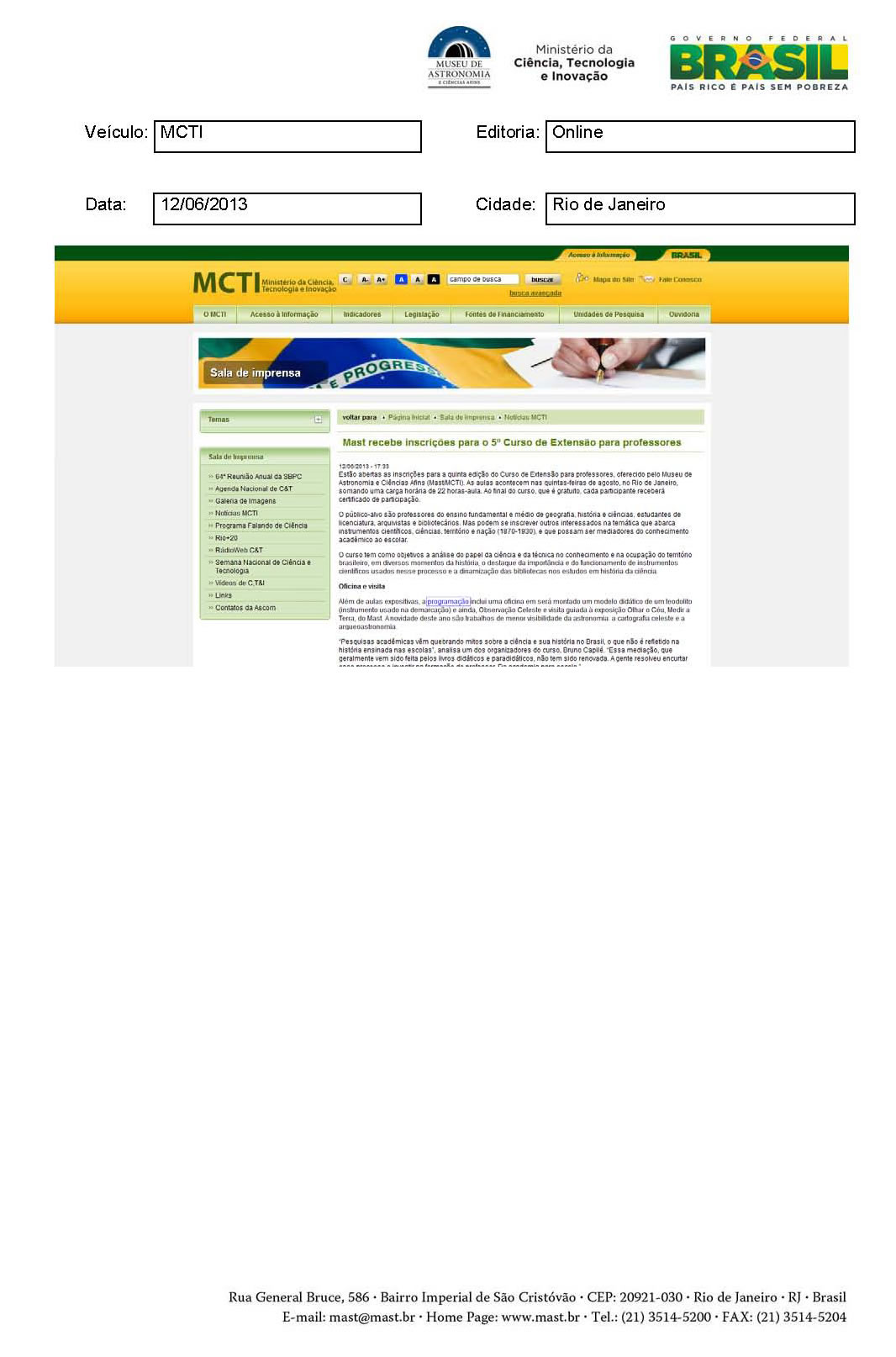 MCTI | Mast recebe inscrições para o 5º Curso de Extensão para professores