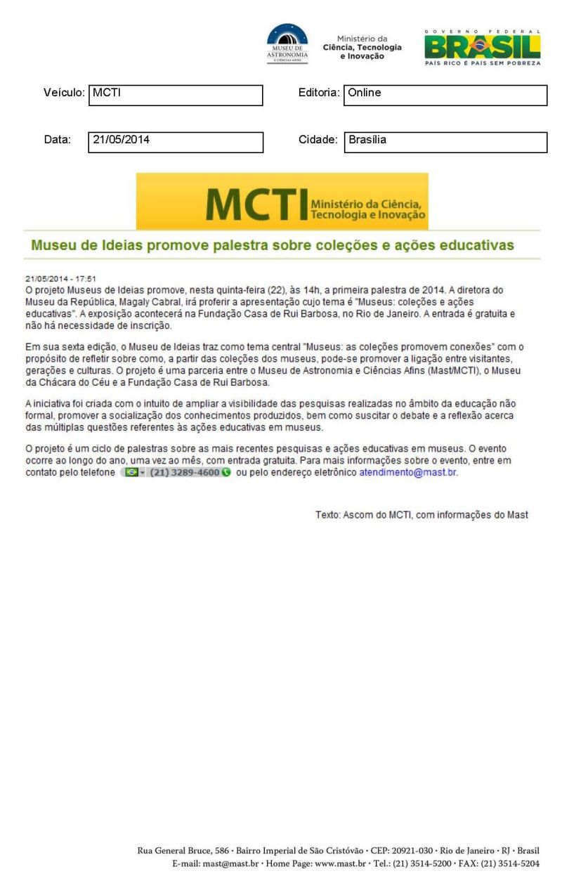 MCTI | Museu de Ideias promove palestra sobre coleções e ações educativas