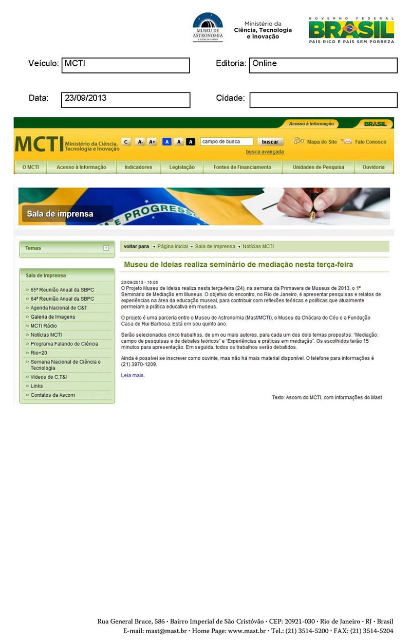 MCTI | Museu de Ideias realiza seminário de mediação nesta terça-feira