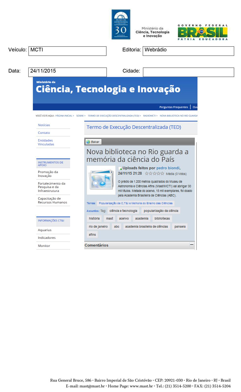 MCTI | Nova biblioteca no Rio guarda a memória da ciência do País