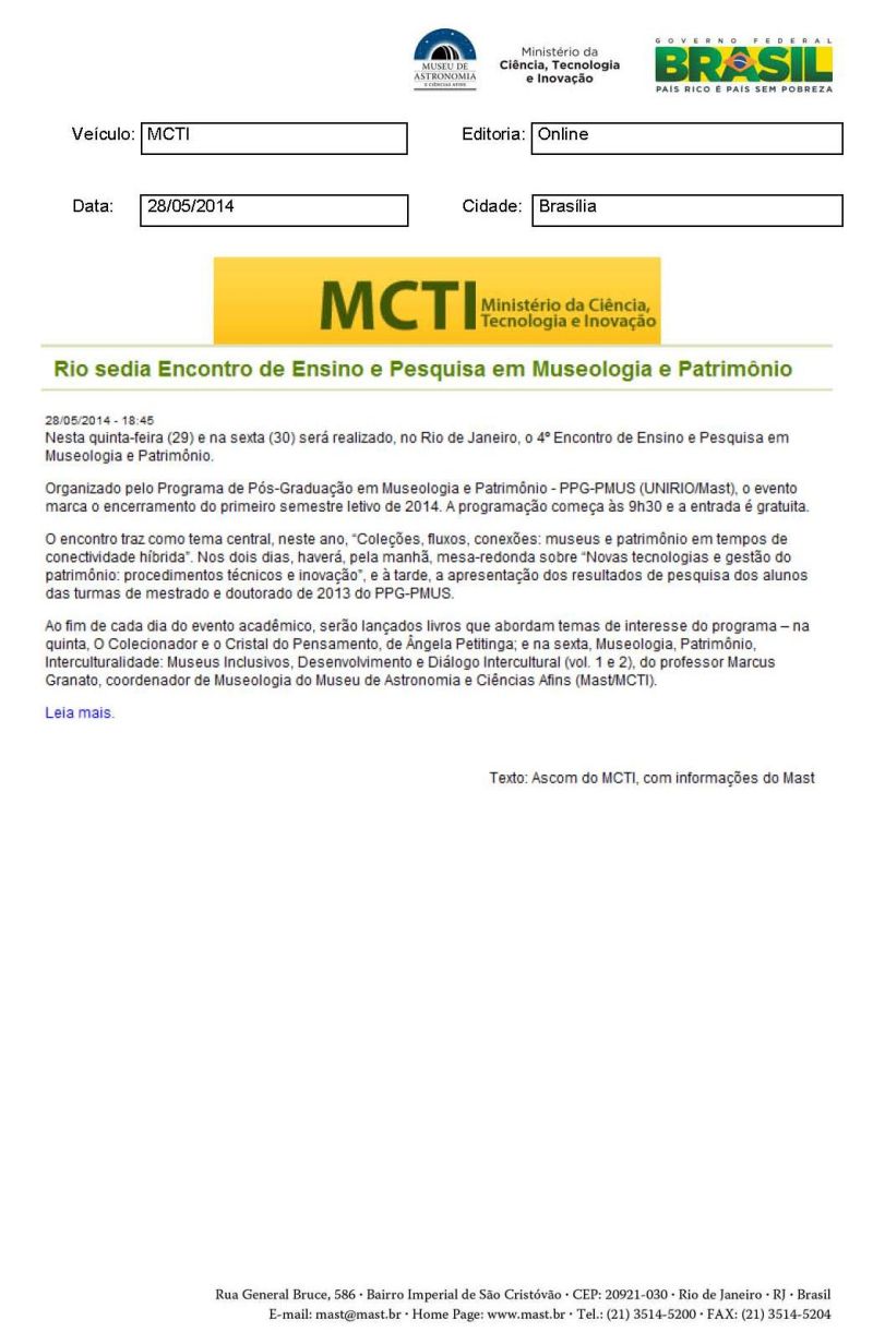 MCTI | Rio sedia Encontro de Ensino e Pesquisa em Museologia e Patrimônio