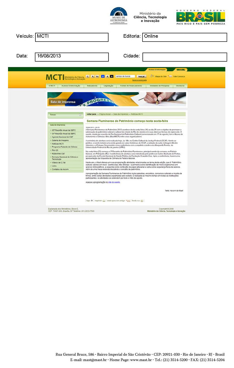 MCTI | Semana Fluminense do Patrimônio começa nesta sexta-feira