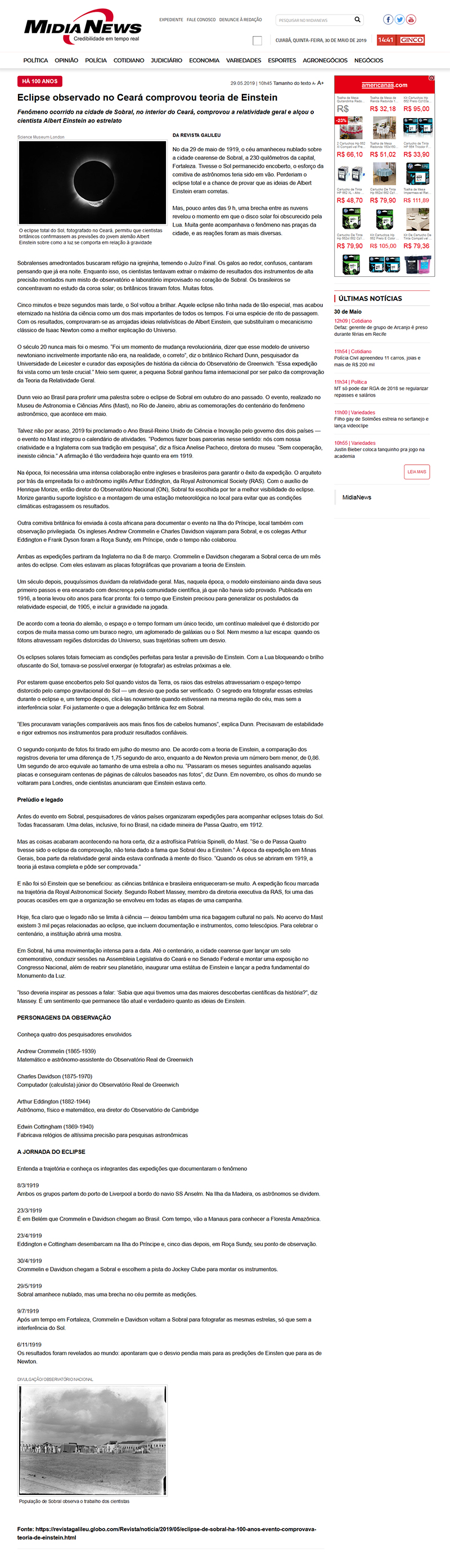 Midia News | Eclipse observado no Ceará comprovou teoria de Einstein