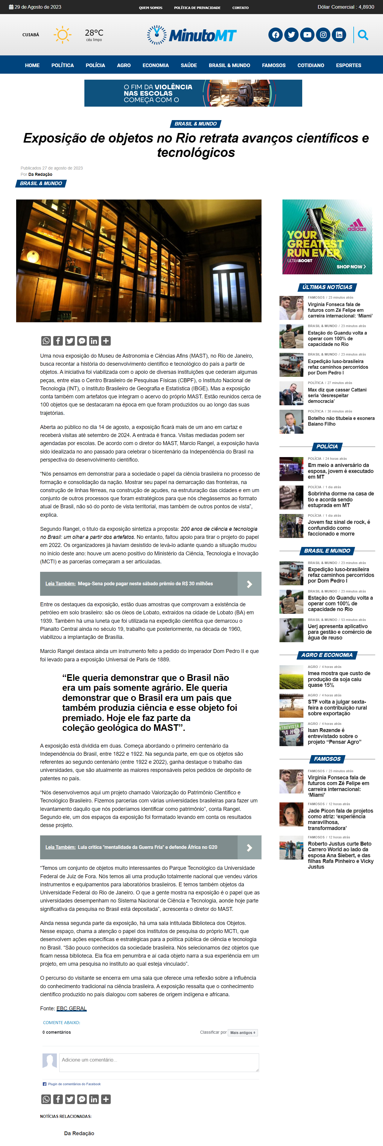 Minuto MT - Exposição de objetos no Rio retrata avanços científicos e tecnológicos