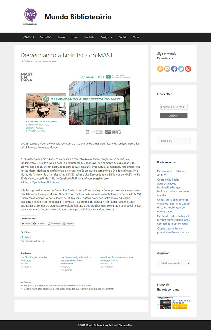 Mundo Bibliotecário | Live 'Desvendando a Biblioteca do MAST’