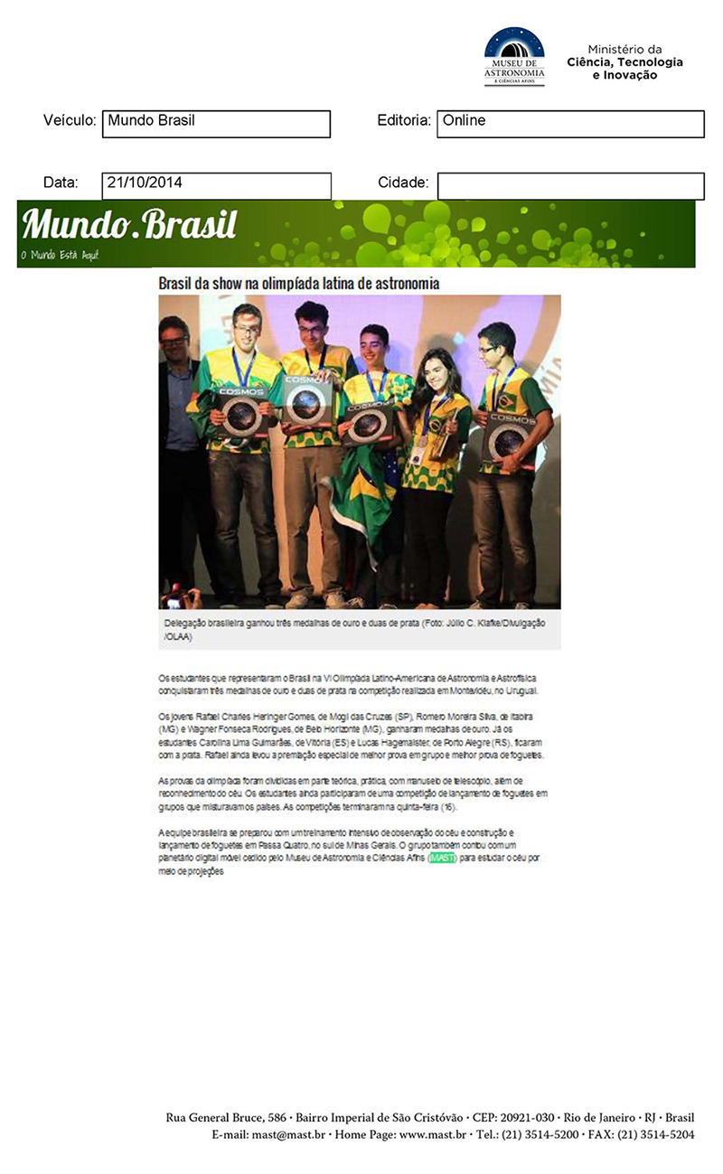 Mundo Brasil | Brasil da show no olimpíada latina de astronomia
