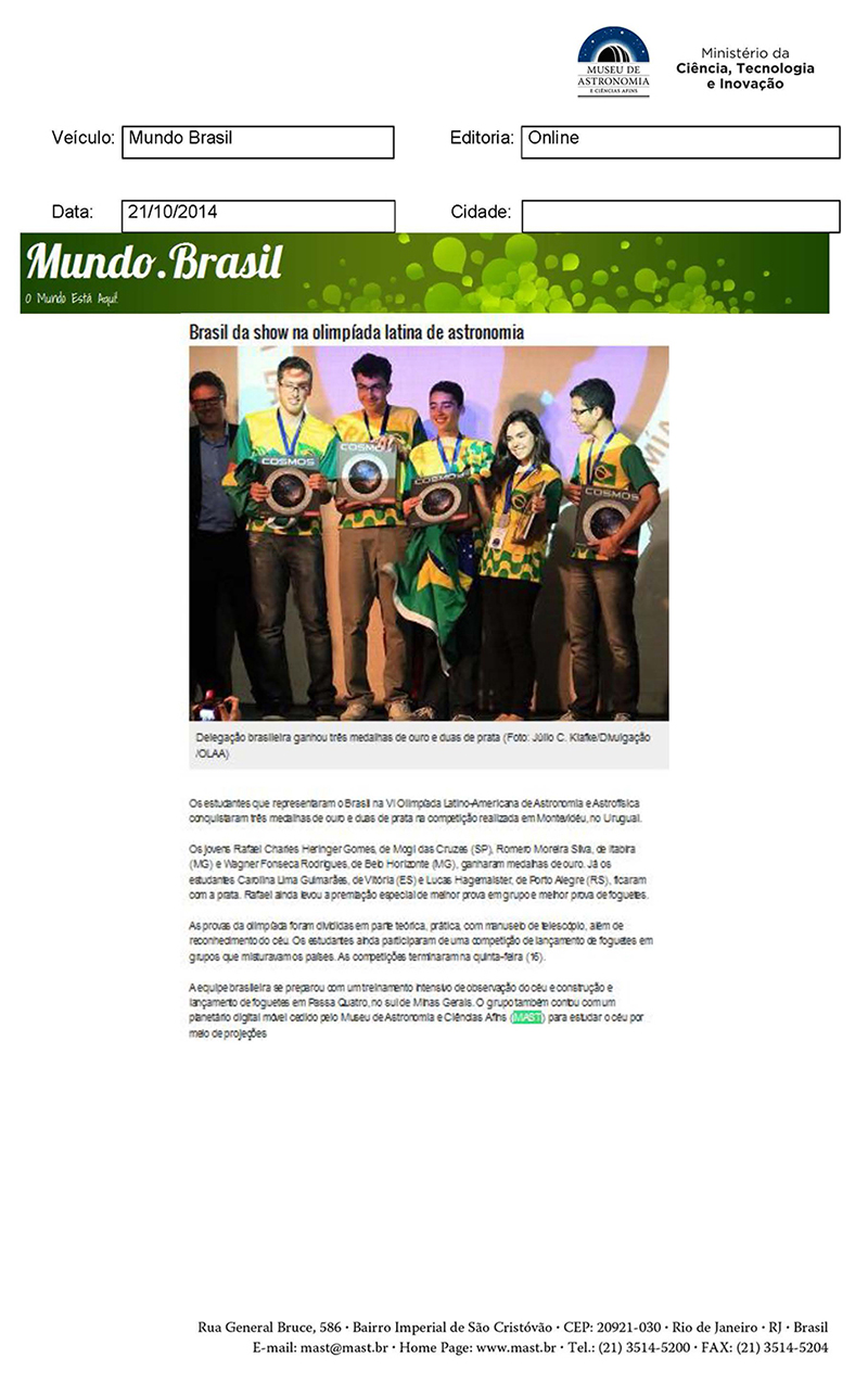 Mundo Brasil | Brasil da show no olimpíada latina de astronomia