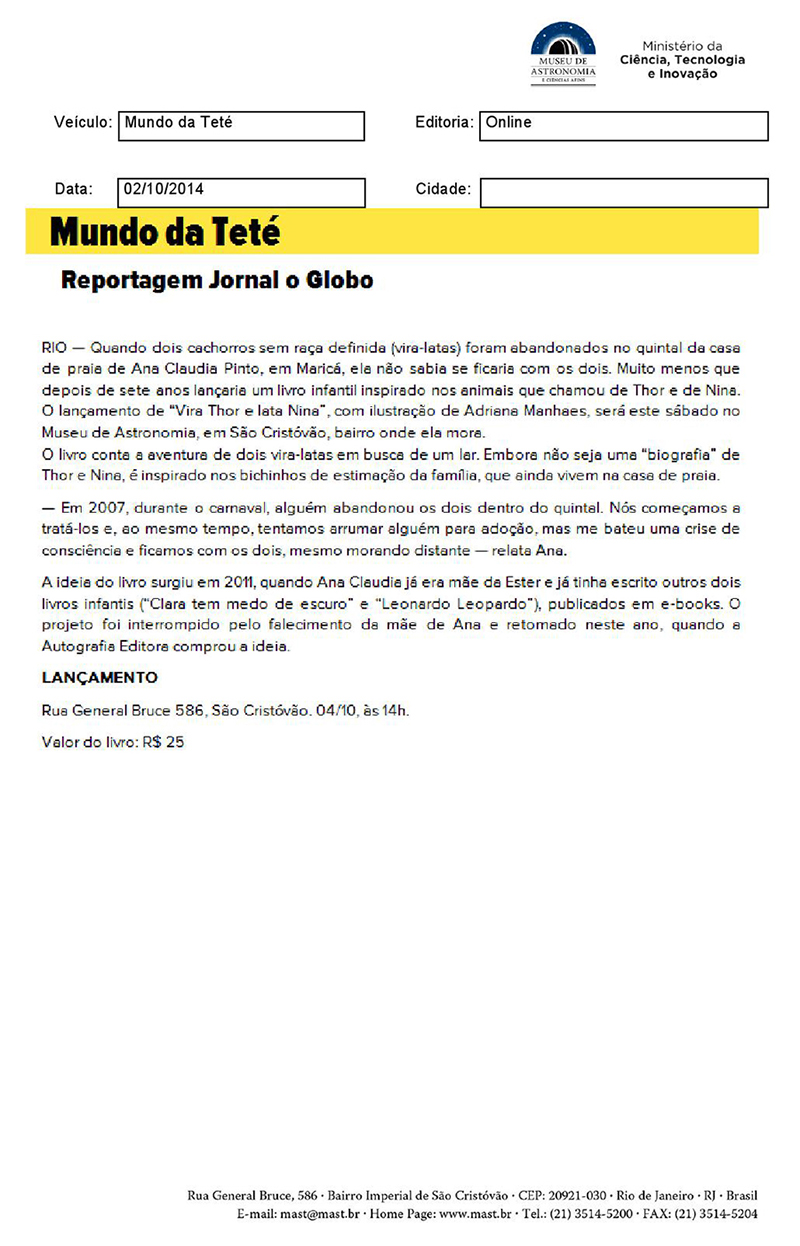 Mundo da Teté | Lançamento livro "Vira Thor e lata Nina"