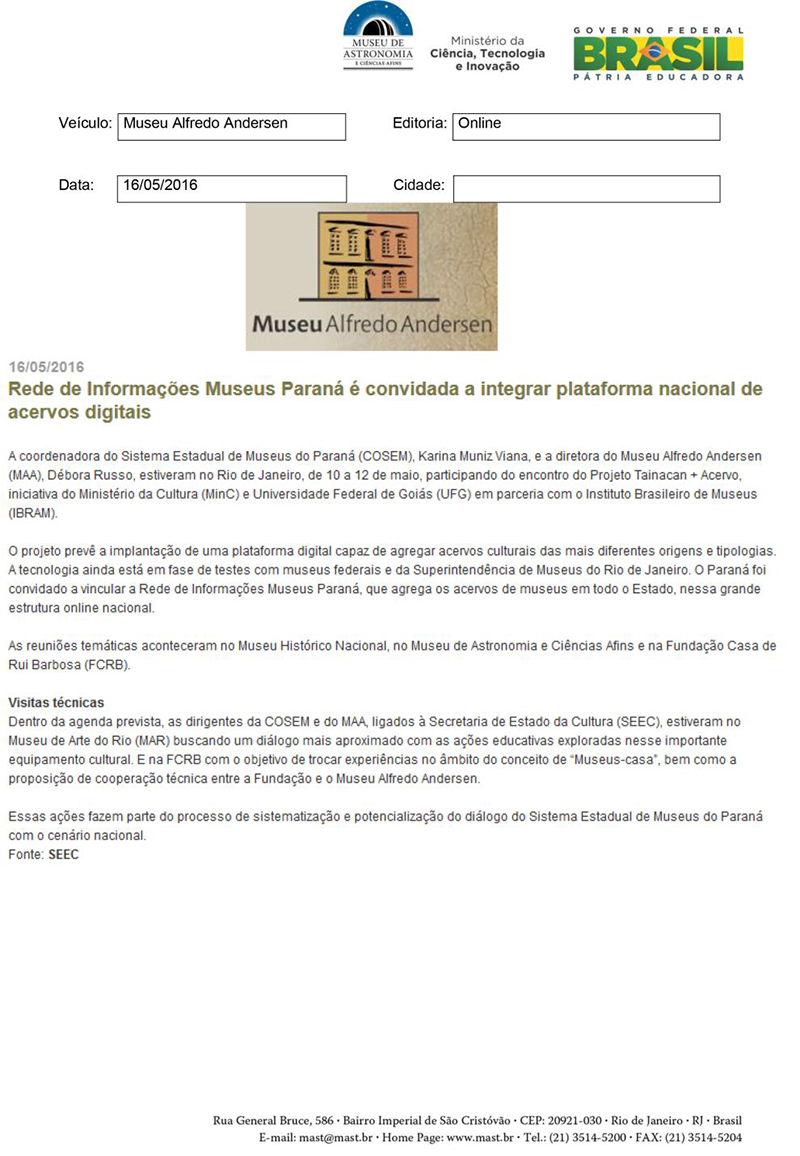 Museu Alfredo Andersen | Rede de Informações Museus Paraná é convidada a integrar plataforma nacional de acervos digitais