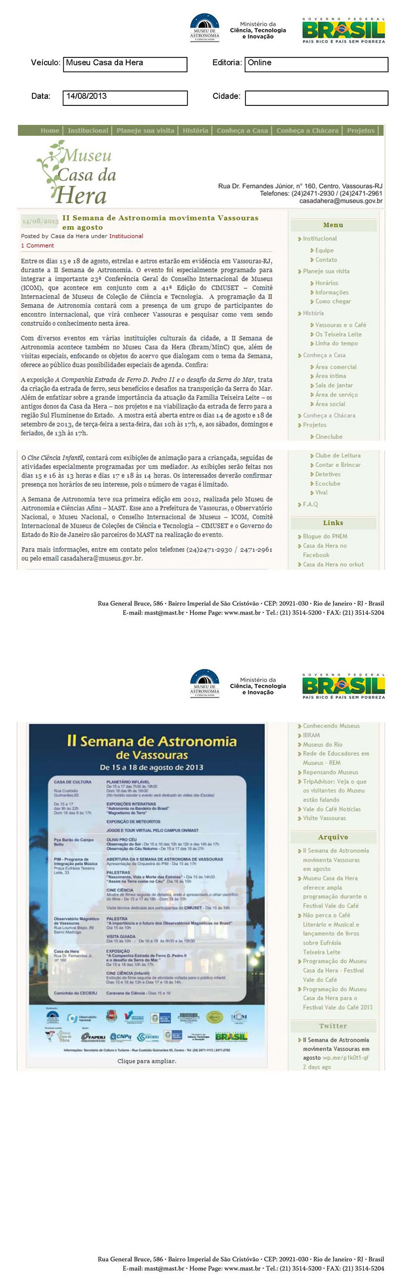 Museu Casa da Hera | II Semana de Astronomia movimenta Vassouras em agosto