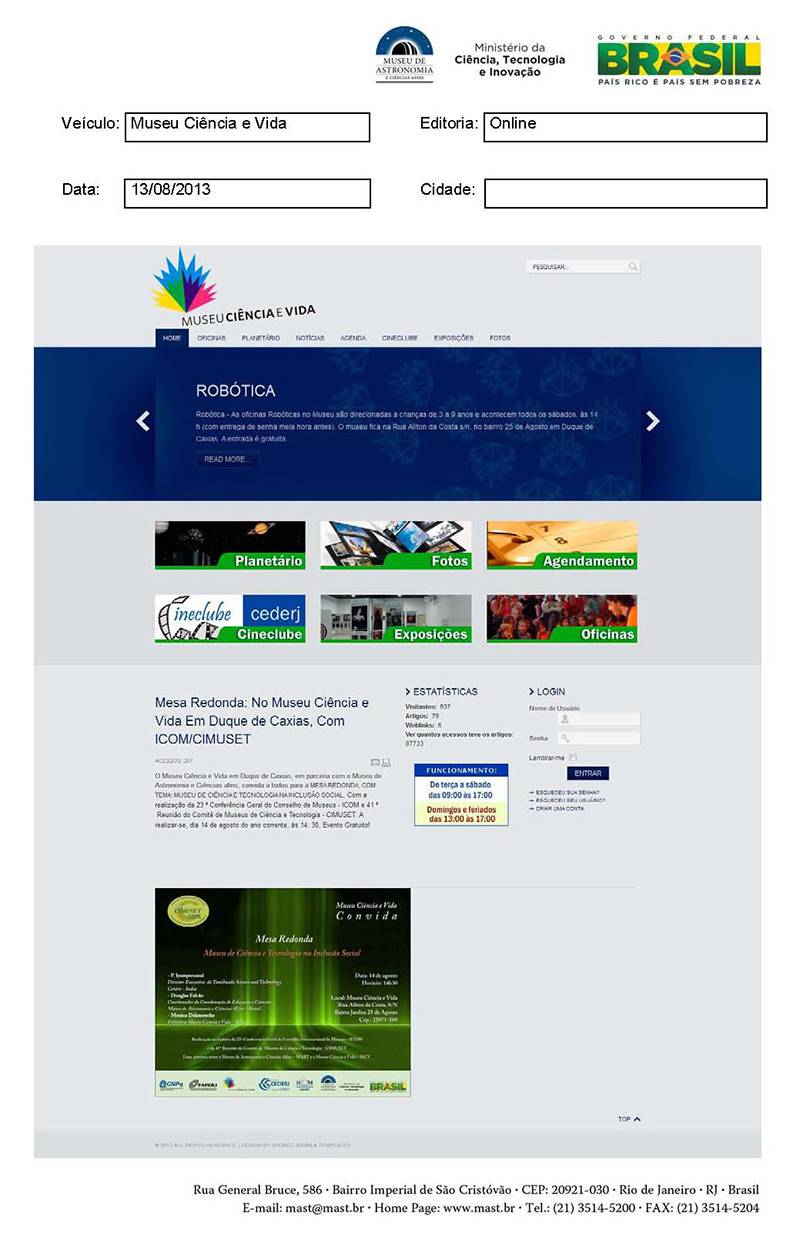Museu Ciência e Vida | Mesa-redonda: no Museu Ciência e Vida em Duque de Caxias, com ICOM/CIMUSET