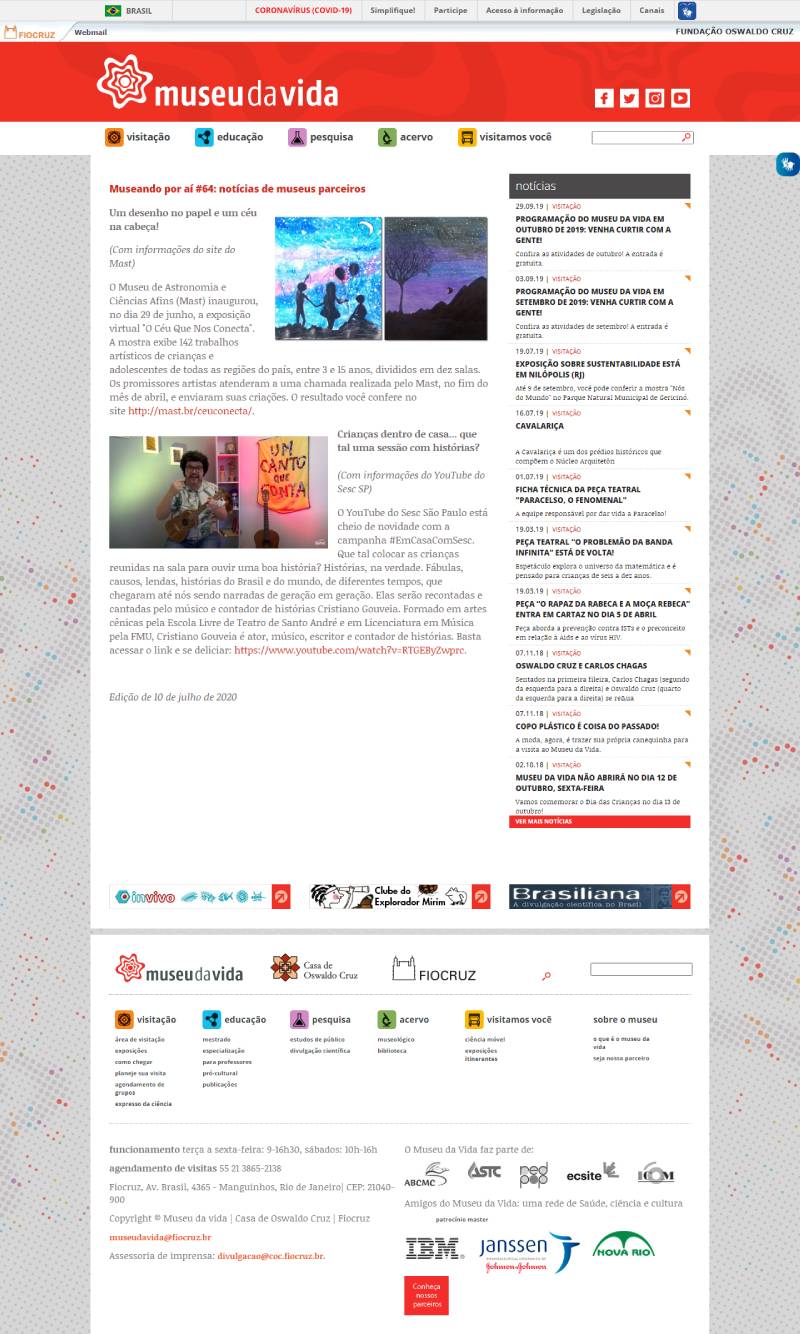 Museu da Vida - Fiocruz (site) / Boletim Museando Por Aí Nº 64 | MAST Em Casa oferece a mostra virtual 'O Céu Que Nos Conecta'