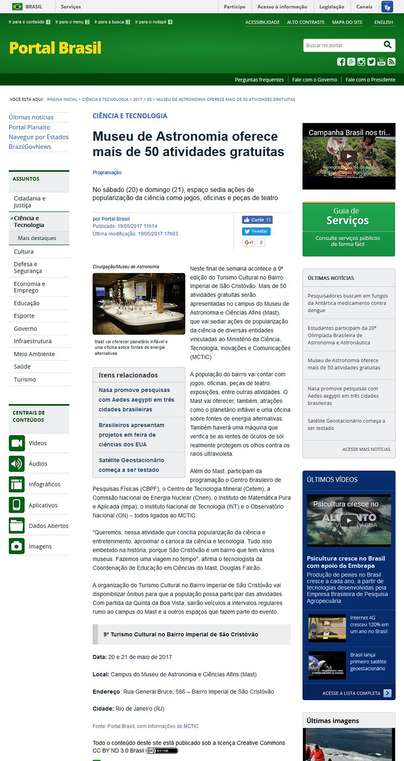 Portal Brasil | Museu de Astronomia oferece mais de 50 atividades gratuitas