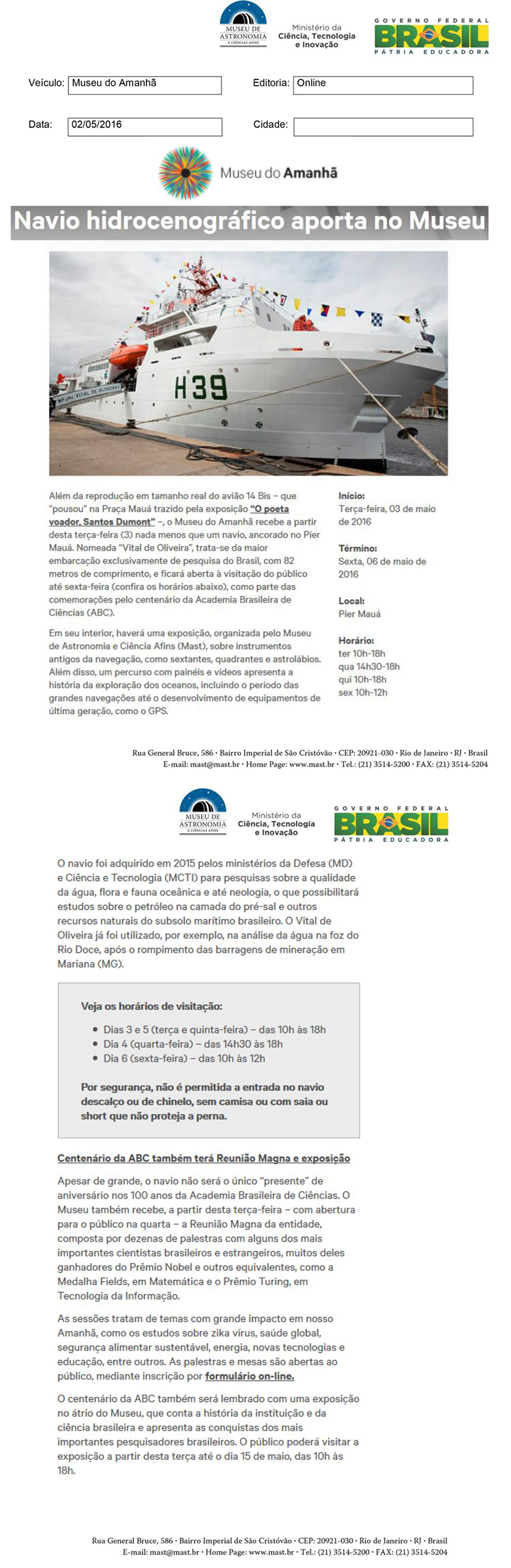 Museu do Amanhã | Navio hidrocenográfico aporta no Museu