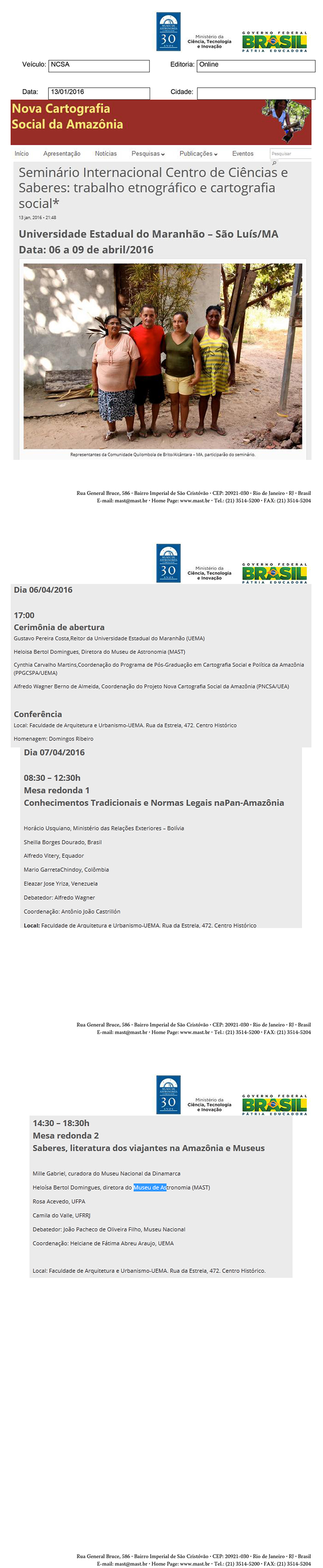 NCSA | Seminário Internacional Centro de Ciências e Saberes: trabalho etnográfico e cartografia social
