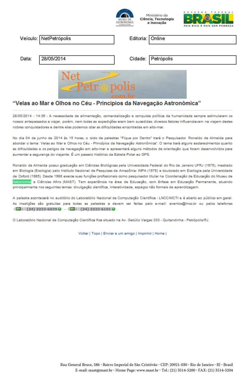 NetPetrópolis | Velas ao Mar e Olhos no Céu - Princípios da Navegação Astronômica"