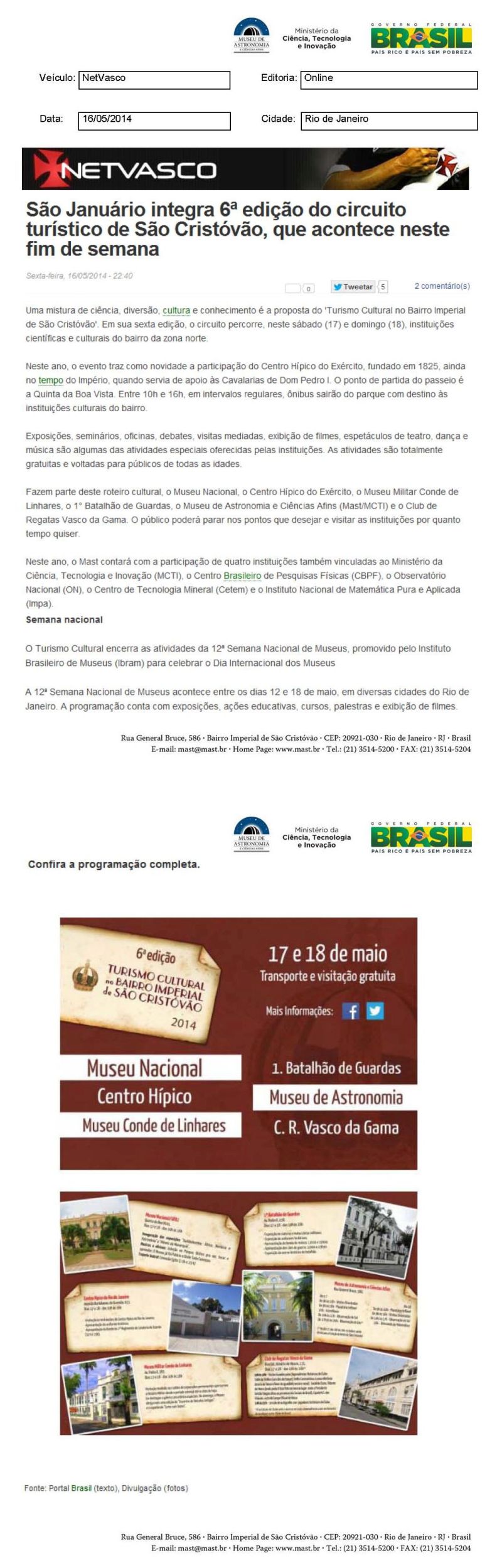 NetVasco | São Januário integra 6ª edição do circuito turístico de São Cristóvão, que acontece neste fim de semana