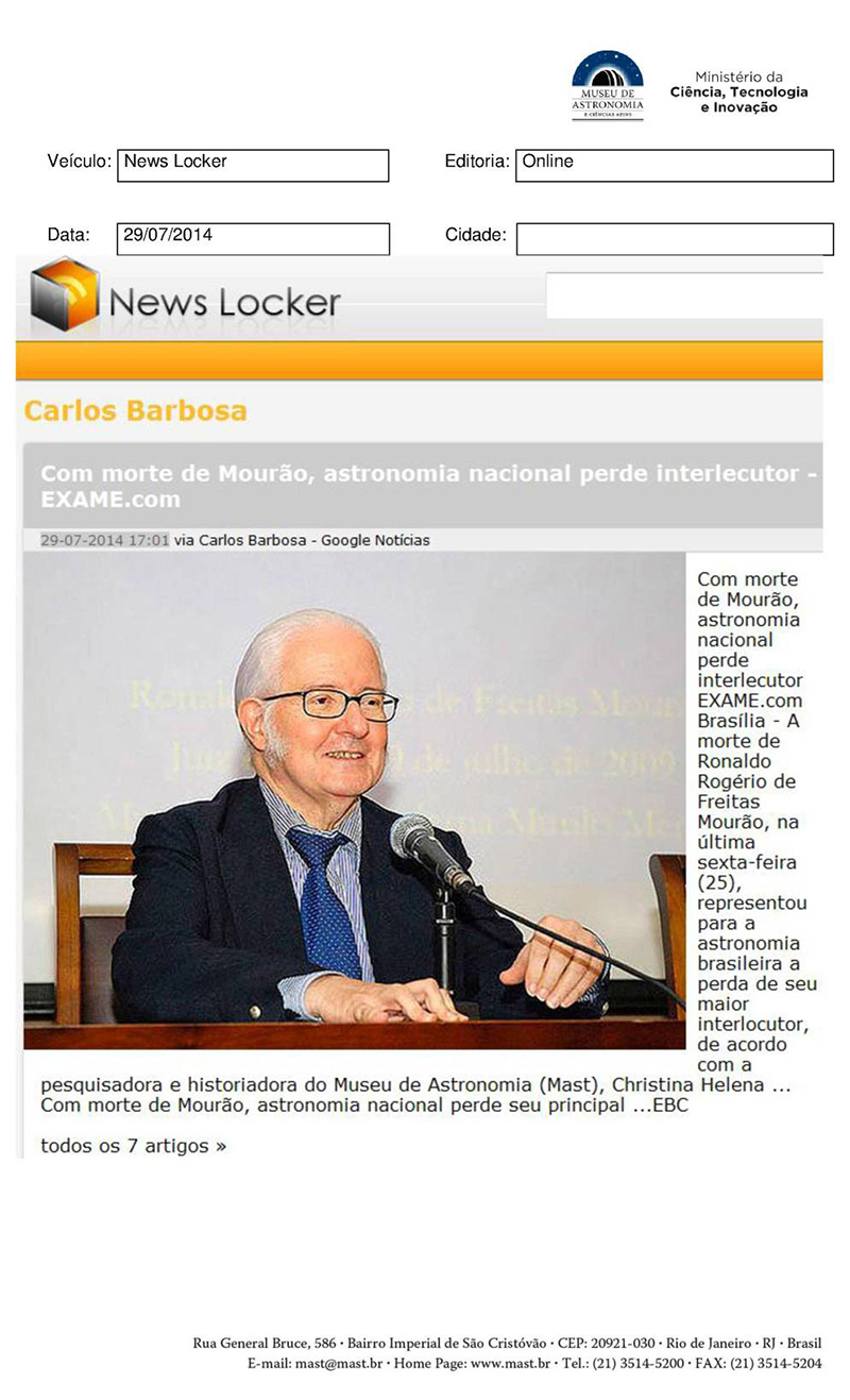 News Locker | Com morte de Mourão, astronomia nacional perde interlocutor