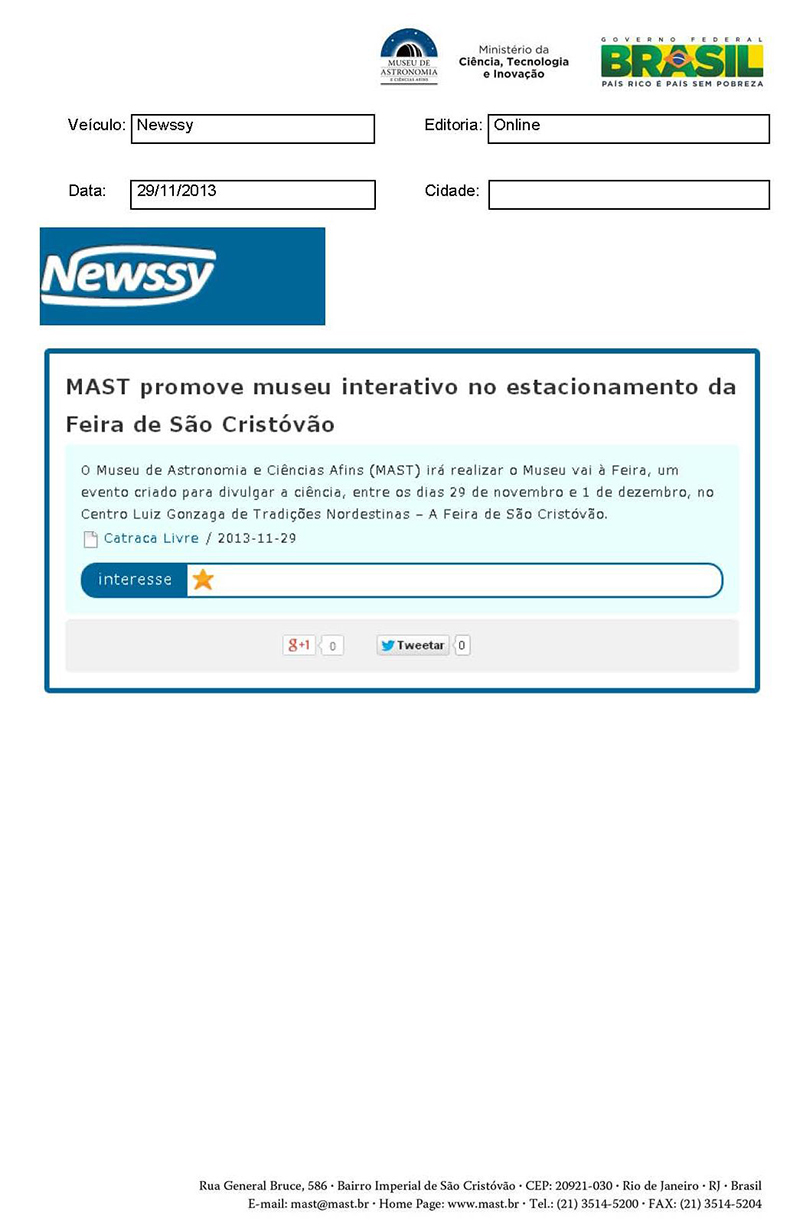 Newssy | MAST promove museu interativo no estacionamento da Feira de São Cristóvão