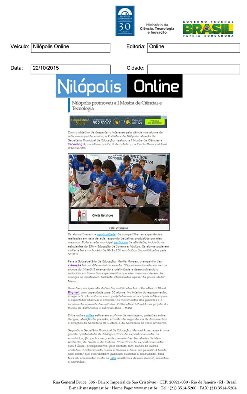 Nilópolis online | Nilópolis promoveu a I Mostra de Ciências e Tecnologia