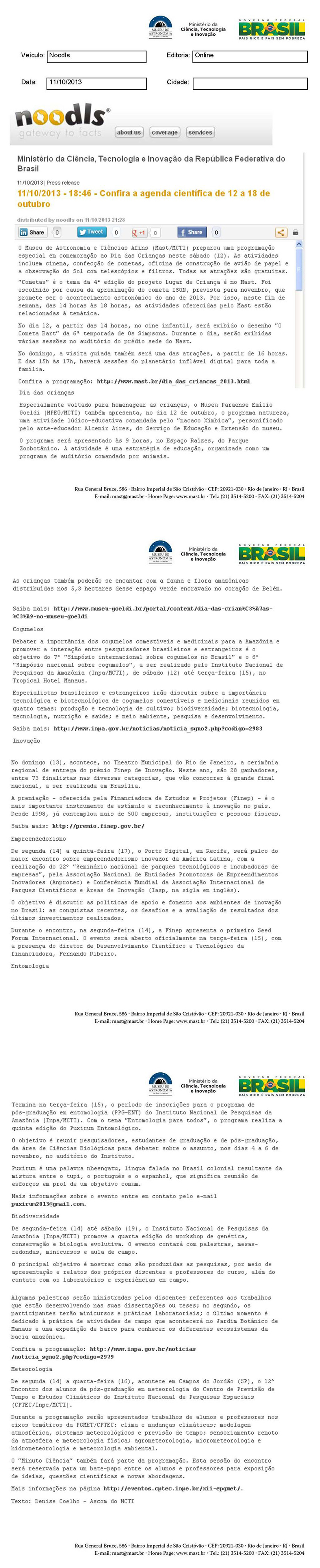 Noodls | Confira a agenda científica de 12 a 18 de outubro