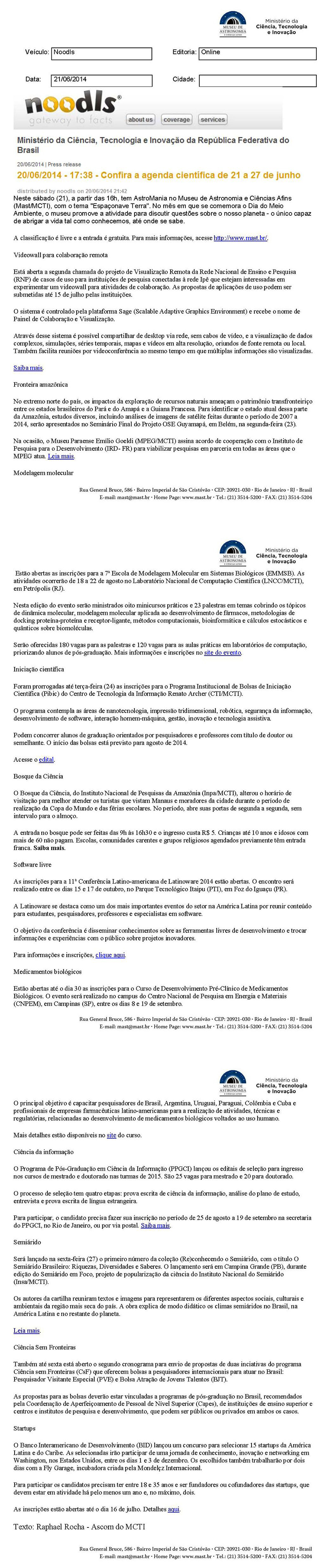 Noodls | Confira a agenda científica de 21 a 27 de junho