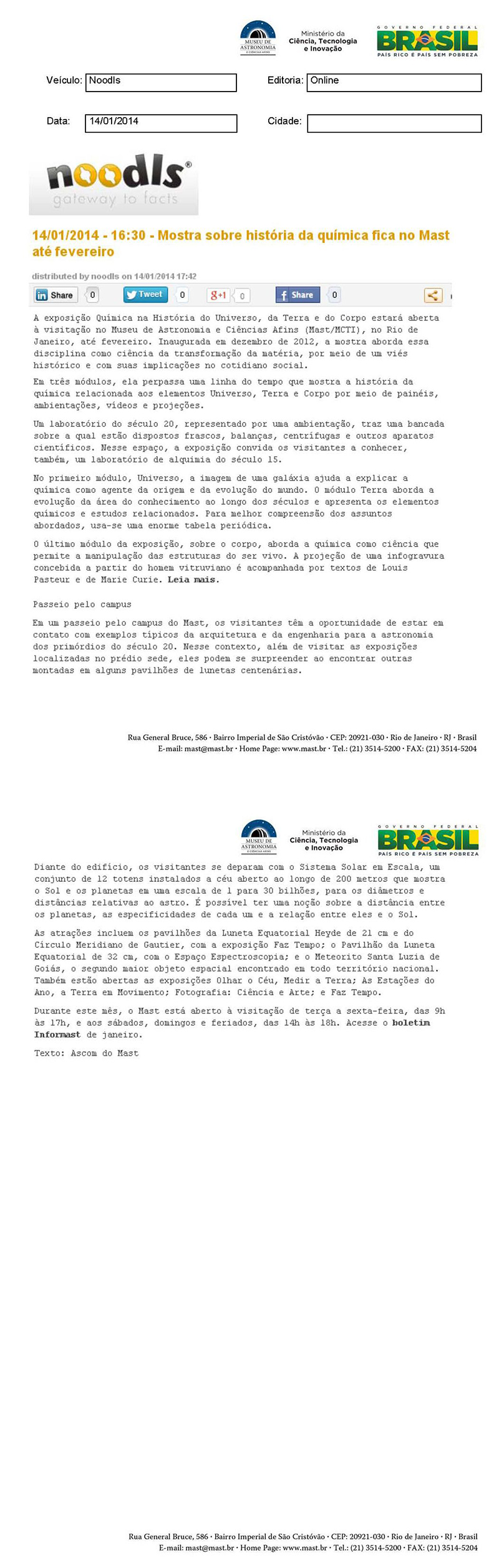 Noodls | Mostra sobre história da química fica no MAST até fevereiro