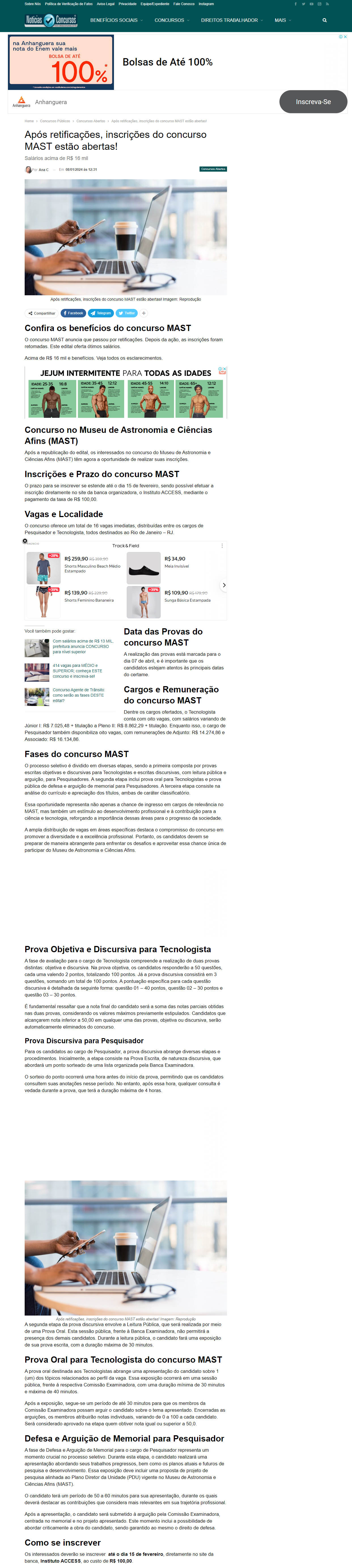 Notícias Concursos - Após retificações, inscrições do concurso MAST estão abertas!
