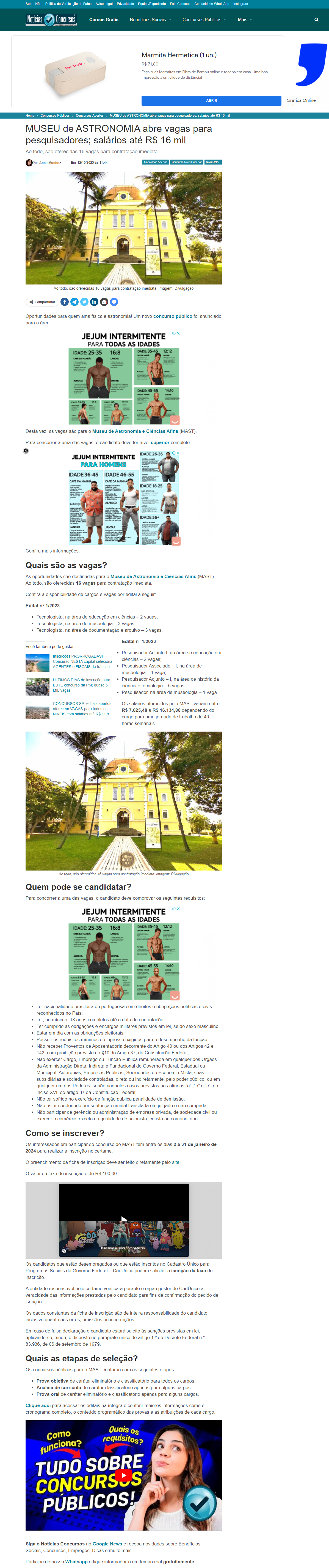 Notícias Concursos - MUSEU de ASTRONOMIA abre vagas para pesquisadores; salários até R$ 16 mil