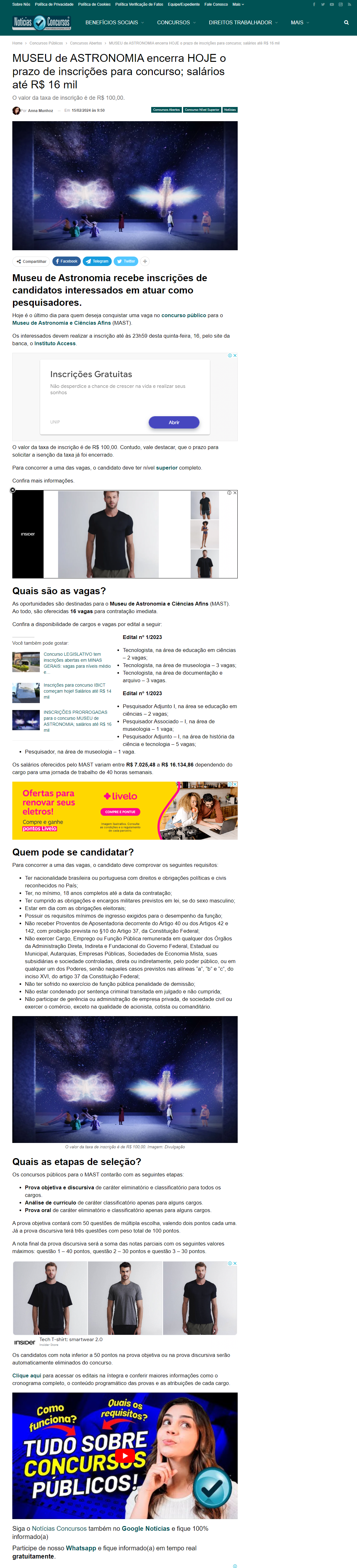 Notícias Concursos - MUSEU de ASTRONOMIA encerra HOJE o prazo de inscrições para concurso; salários até R$ 16 mil