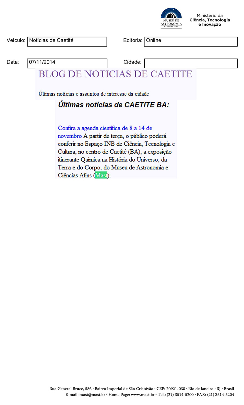 Notícias de Caetité | Confira a agenda científica de 8 a 14 de novembro