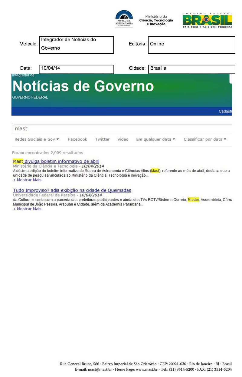 Notícias de Governo | Museu de Astronomia e Ciências Afins