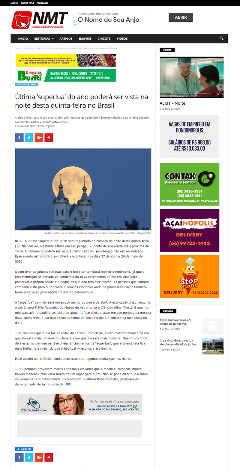 Notícias de Mato Grosso (Cuiabá-MT) | MAST na reportagem sobre a última Superlua de 2020