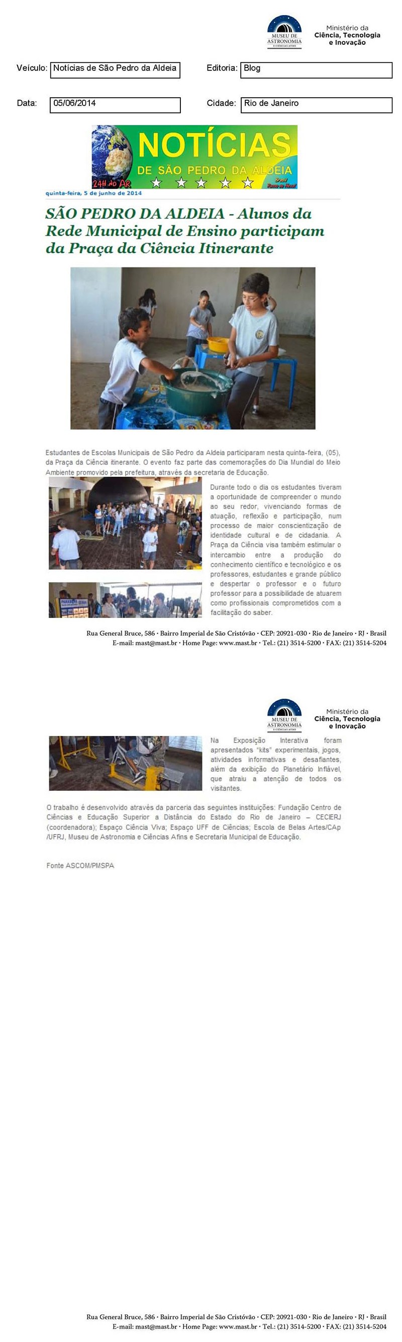 Notícias de São Pedro da Aldeia | Alunos da Rede Municipal de Ensino participam da Praça da Ciência Itinerante