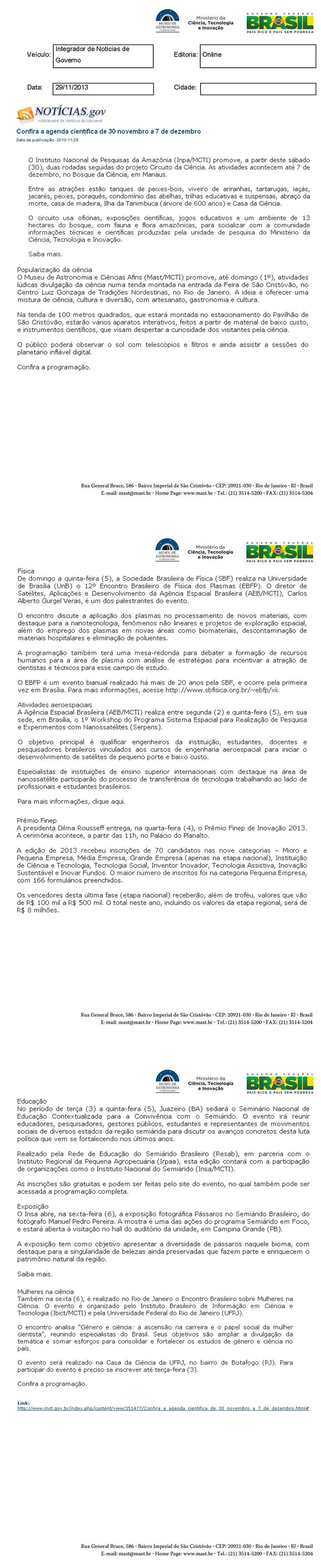 Notícias.gov | Confira a agenda científica de 30 novembro a 7 de dezembro