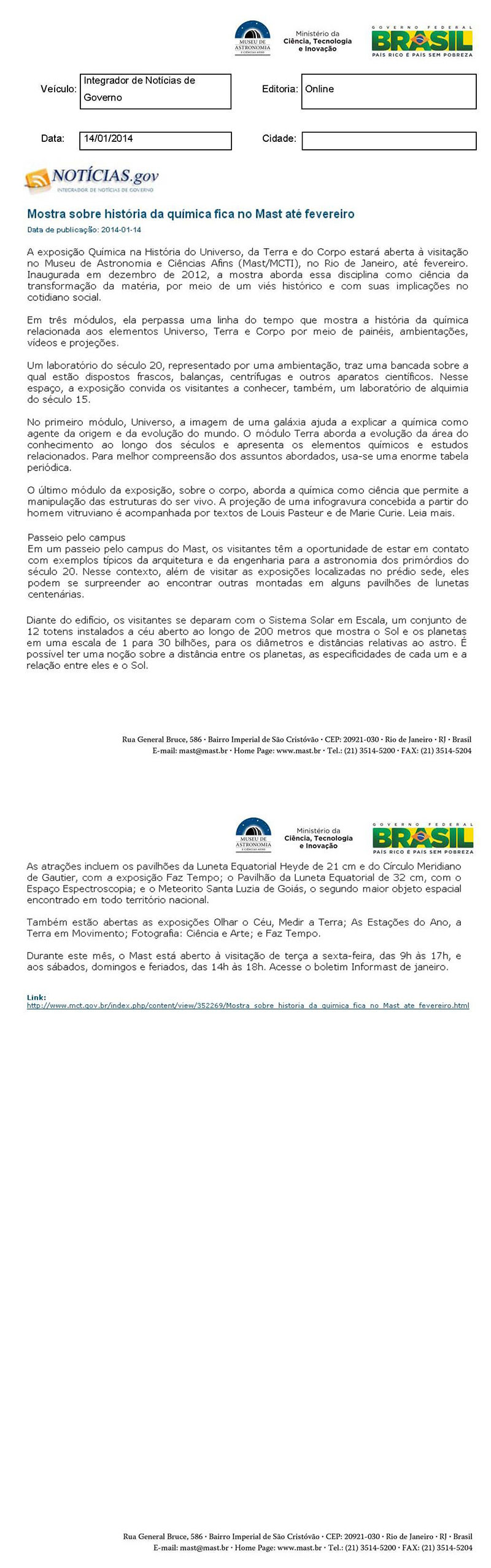 Notícias.gov | Mostra sobre história da química fica no MAST até fevereiro