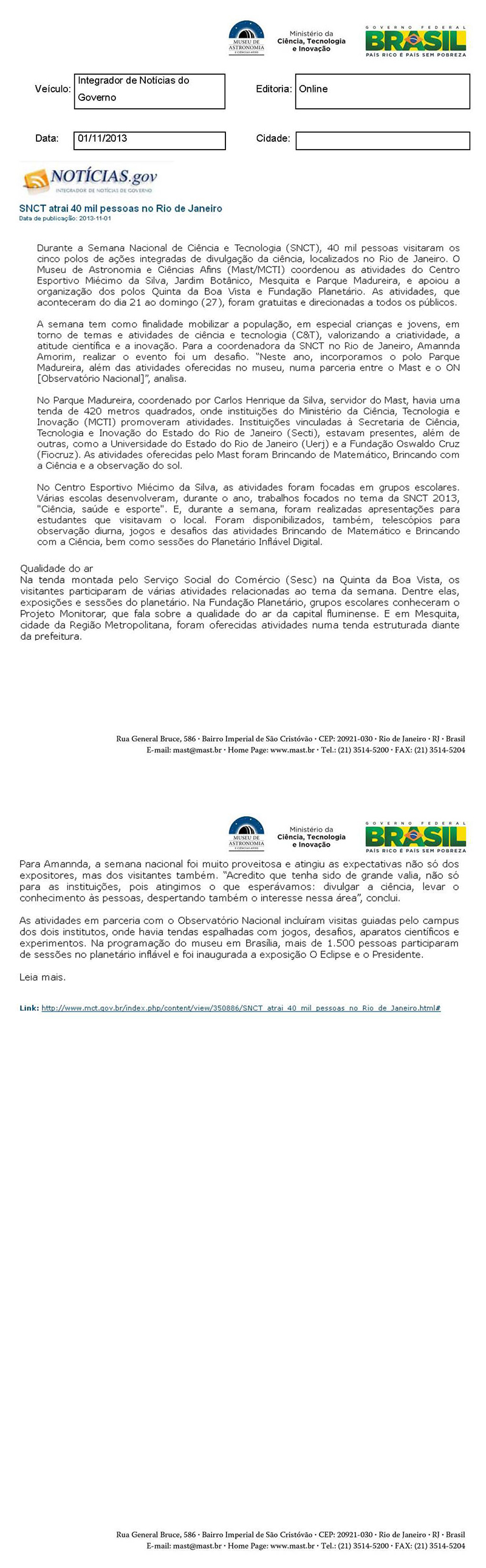 Notícias.gov | SNCT atrai 40 mil pessoas no Rio de Janeiro