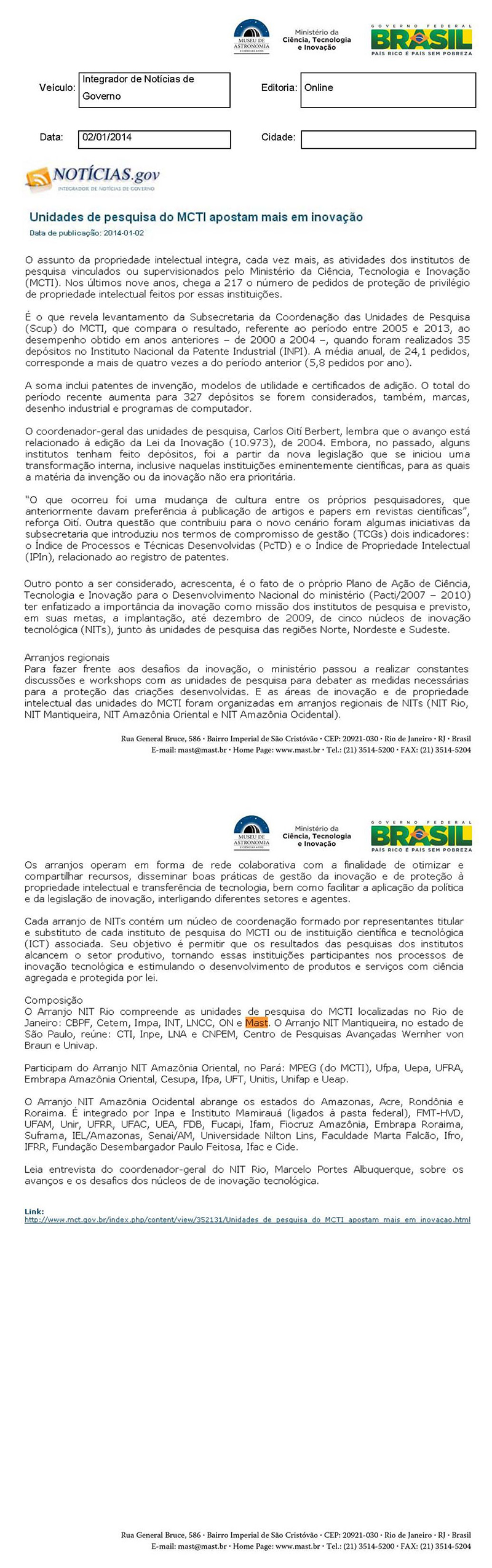 Notícias.gov | Unidades de pesquisa do MCTI apostam mais em inovação