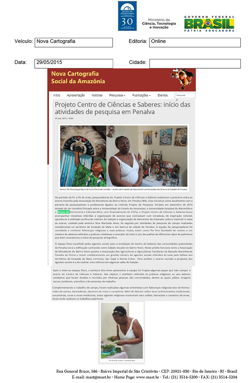 Nova Cartografia Social da Amazônia | Projeto Centro de Ciências e Saberes: Início das atividades de pesquisa em Penalva