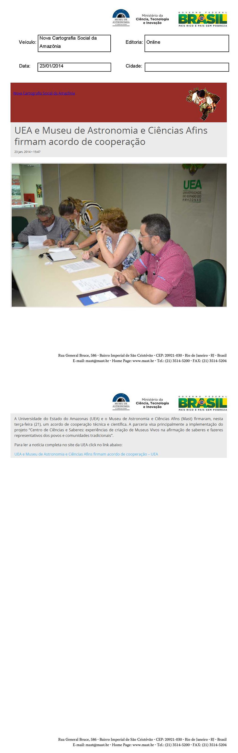 Nova Cartografia Social da Amazônia | UEA e Museu de Astronomia e Ciências Afins firmam acordo de cooperação