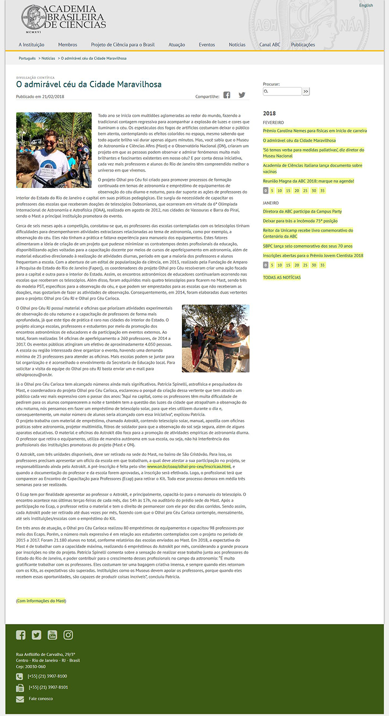 Academia Brasileira de Ciências | O admirável céu da Cidade Maravilhosa