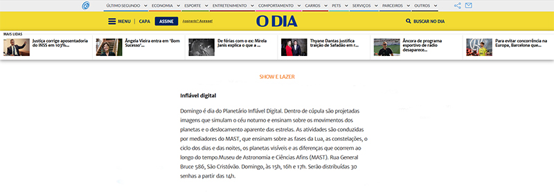 O Dia online - Show e Lazer | Domingo é dia de Planetário Inflável Digital
