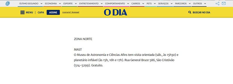 O Dia online - Show & Lazer | Fim de Semana para conhecer o Universo no MAST