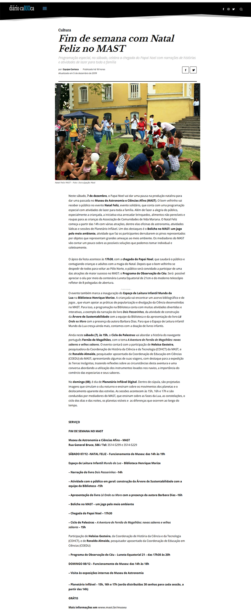 O Diário Carioca | Fim de Semana com Natal Feliz no MAST