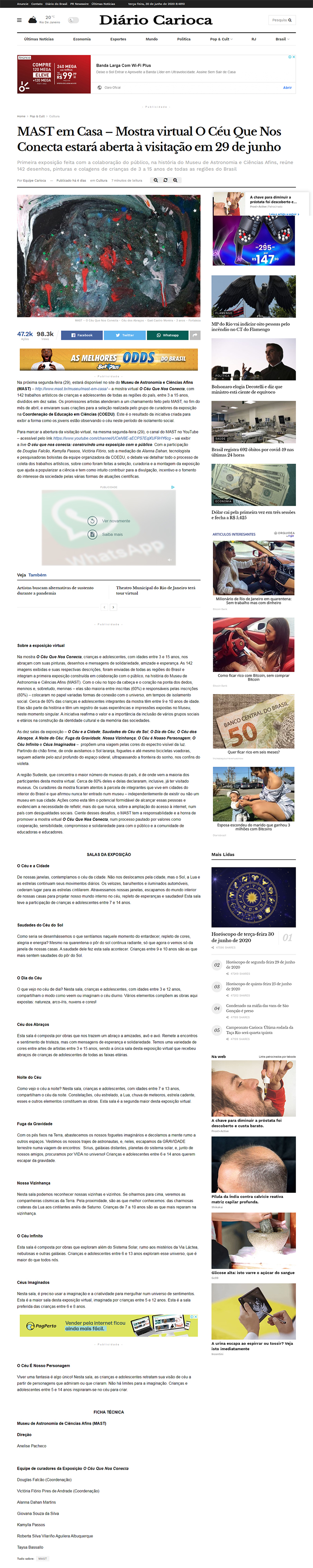 O Diário Carioca on-line | MAST abre a mostra virtual 'O Céu Que Nos Conecta' em 29 de junho
