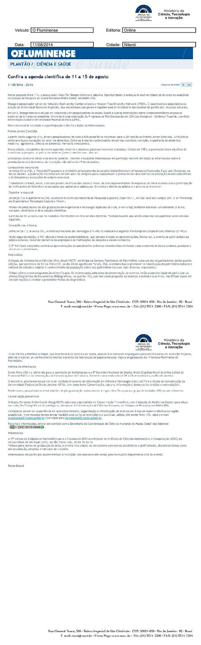 O Fluminense | Confira a agenda científica de 11 a 15 de agosto