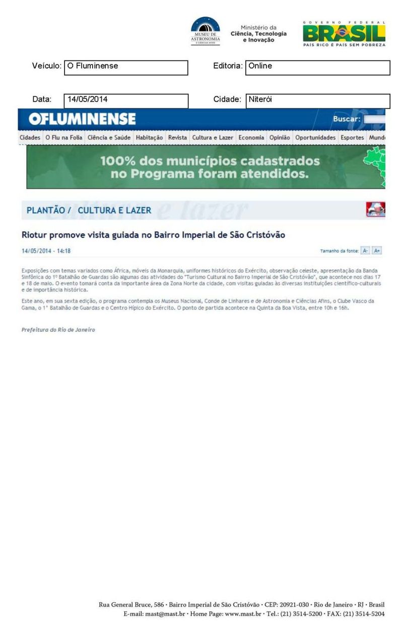 O Fluminense | Riotur promove visita guiada no Bairro Imperial de São Cristóvão