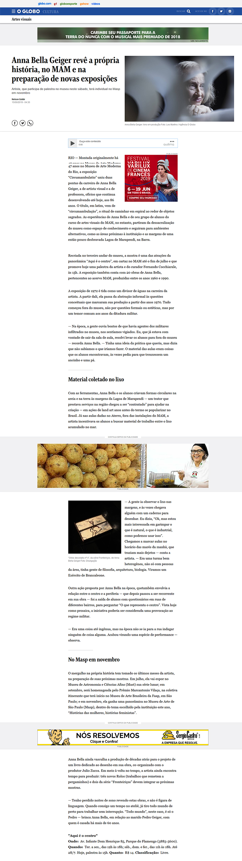 O Globo | Anna Bella Geiger revê a própria história, no MAM e na preparação de novas exposições