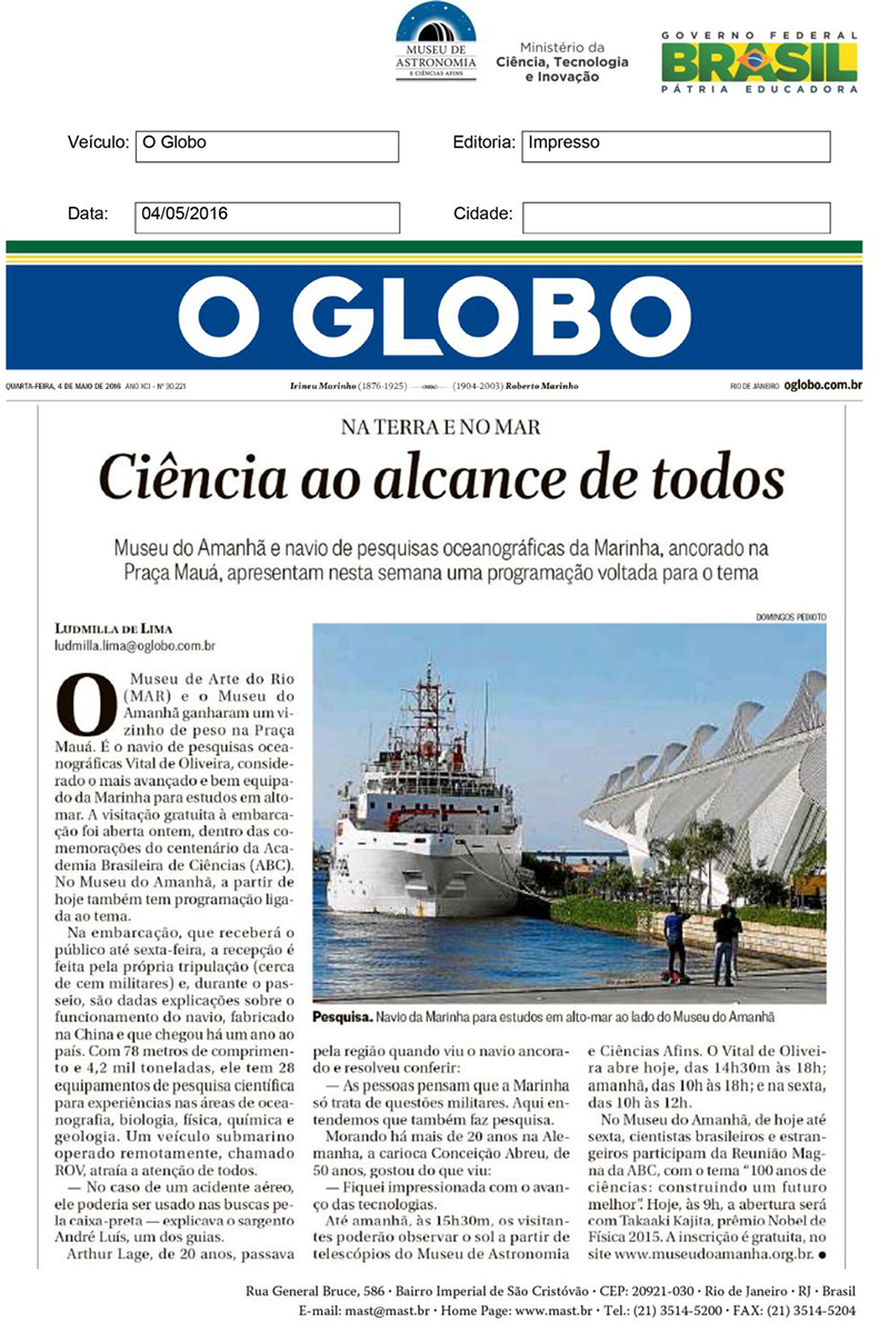 O Globo | Ciência ao alcance de todos